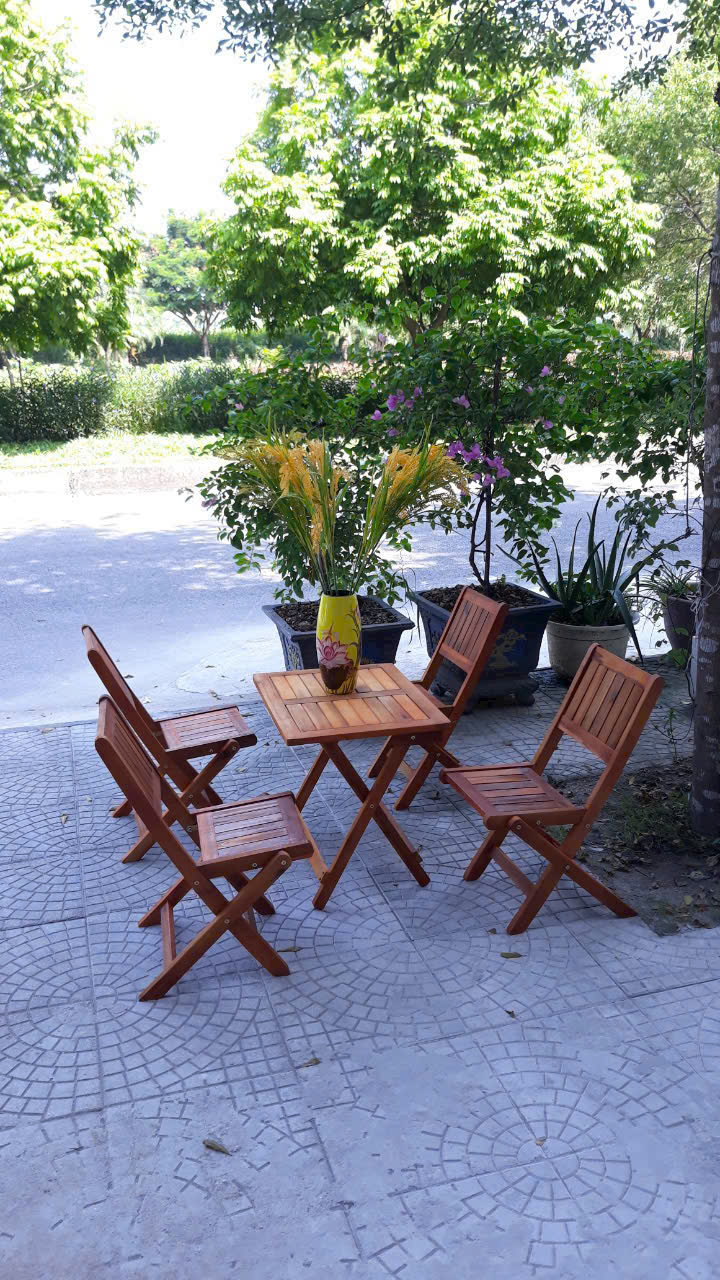 Boire du thé ou du café dans la cour